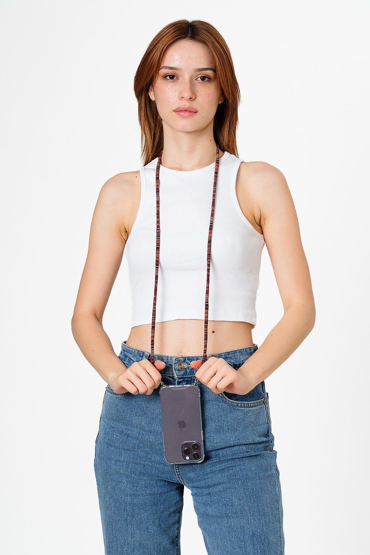 Hippi Alder Renkli 110 Cm Ipli Tüm Telefonlarla Uyumlu Ve Boyun Askılı Kumaş Telefon Askısı