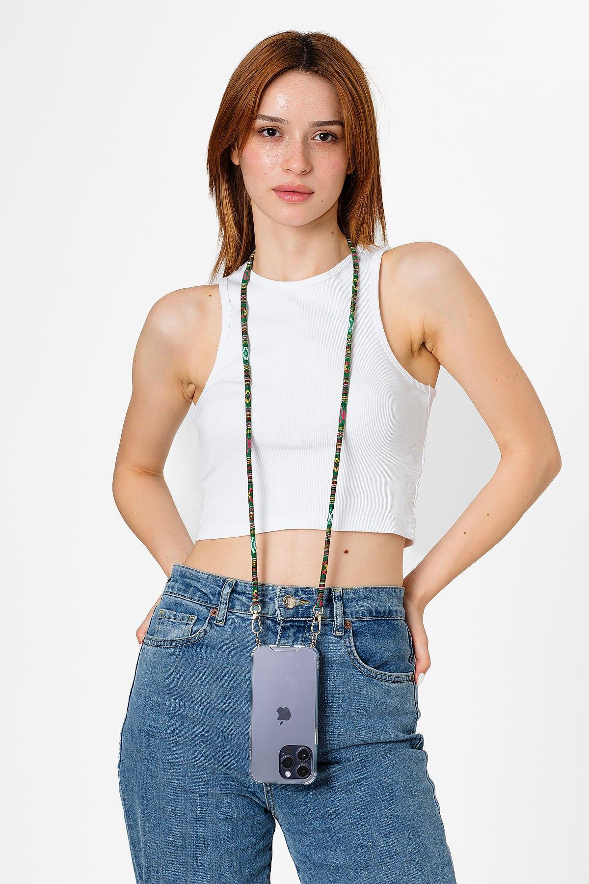 Hippi Forest Renkli 110 cm Ipli Tüm Telefonlarla Uyumlu Ve Boyun Askılı Kumaş Telefon Askısı