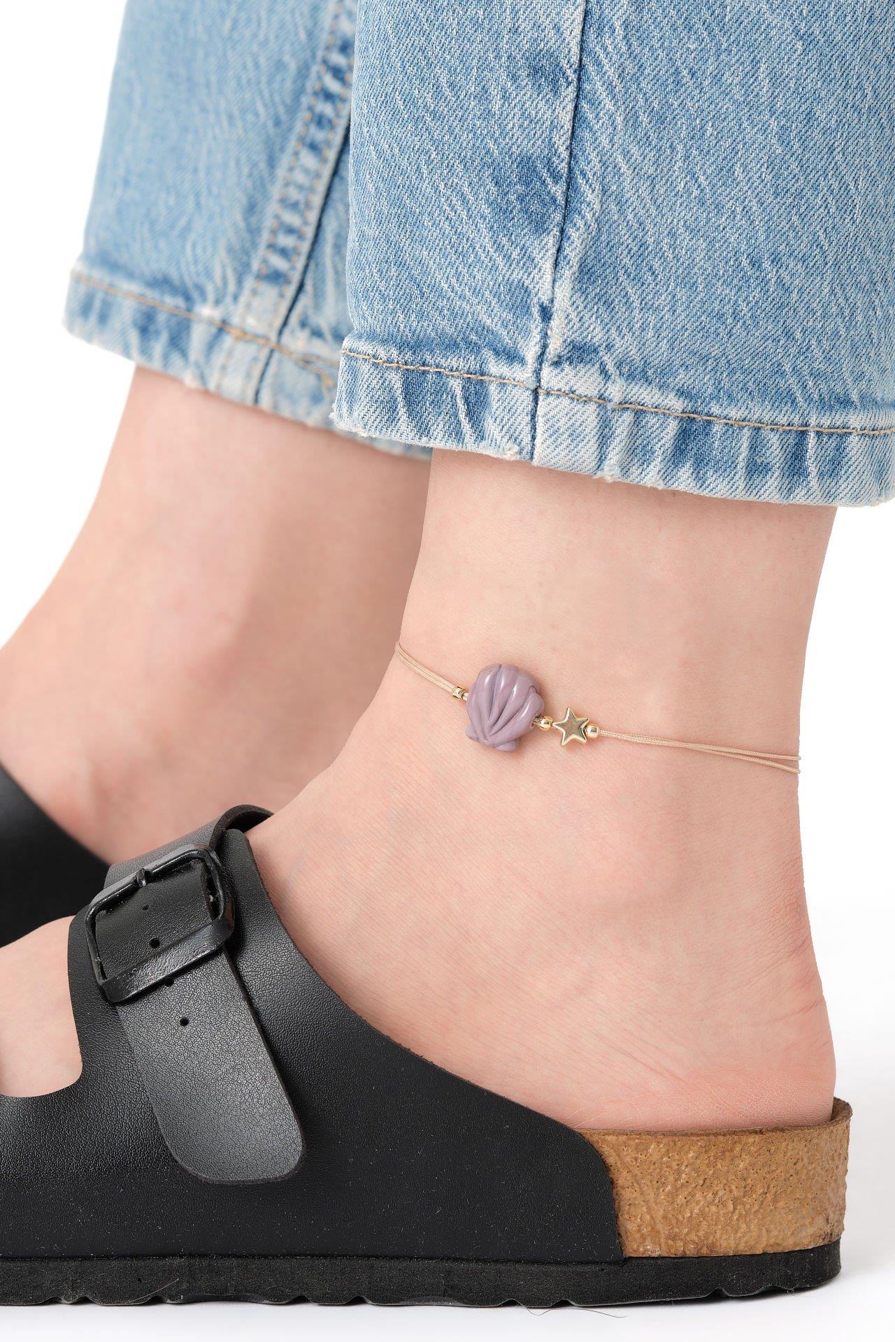 Hippi Mor Deniz Kabuğu Ayarlanabilir Bileklik & Halhal
